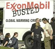 "Environmental activists blocked the entrance to Exxon Mobil's headquarters