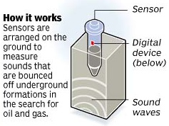 "The vessel [the Maurice Ewing], which is owned by the US National Science Foundation and operated by Columbia University's Lamont-Doherty Earth Observatory, is one of more than 40 vessels worldwide equipped for seismic testing. The technique involves using high-powered air guns to blast powerful, low-frequency sound up to 20 miles into the ocean's crust."