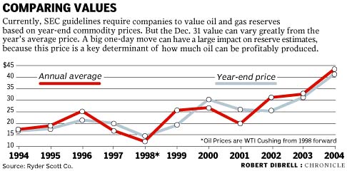 "According to a study by John S. Herold Inc., an independent research firm based in Norwalk, Conn., global oil companies pumped more than 10 billion barrels on average a year in the last five years, but recorded only about 7 billion barrels of reserves." ...