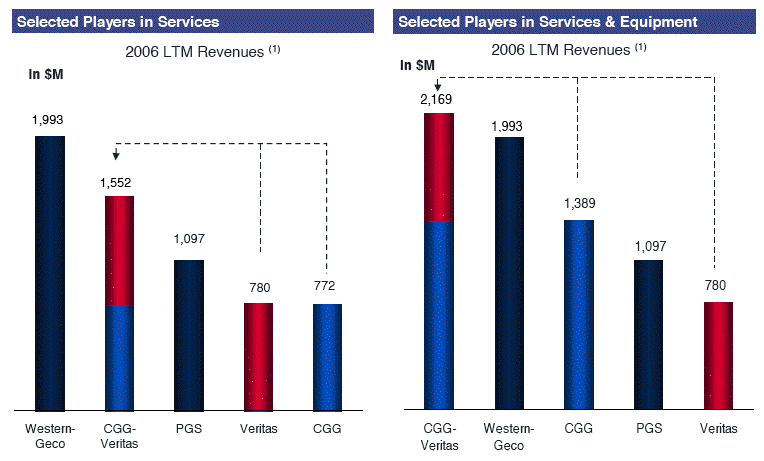 > The CGG web site has a nice PDF presentation on the merger. This graph shows the relative sizes of the major seismic contractors, with and without Sercel: