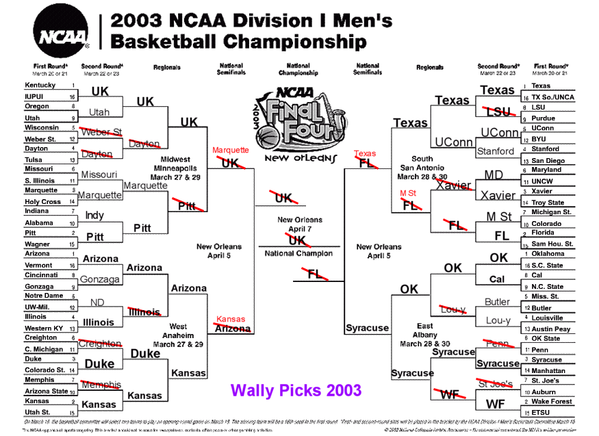 my brackets. My final four is Kentucky, Arizona, Florida and Syracuse, with
