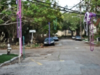 "We find some neighbors, a block away on Rendon. We stop and take pictures (we don't know them, have never seen them before) but we are grateful anyway, and they are happy to see us. We drive away, telling them we'll see them next week, and they point out the down power line that is dropped low across the street. They have put Mardi Gras beads on it, so that drivers will see it."