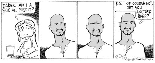 I'm pointing to a strip from July 2003, which is a good jumping on spot for introducing most of the characters. It's not Doonesbury or Calvin and Hoobes, but I'm enjoying it.